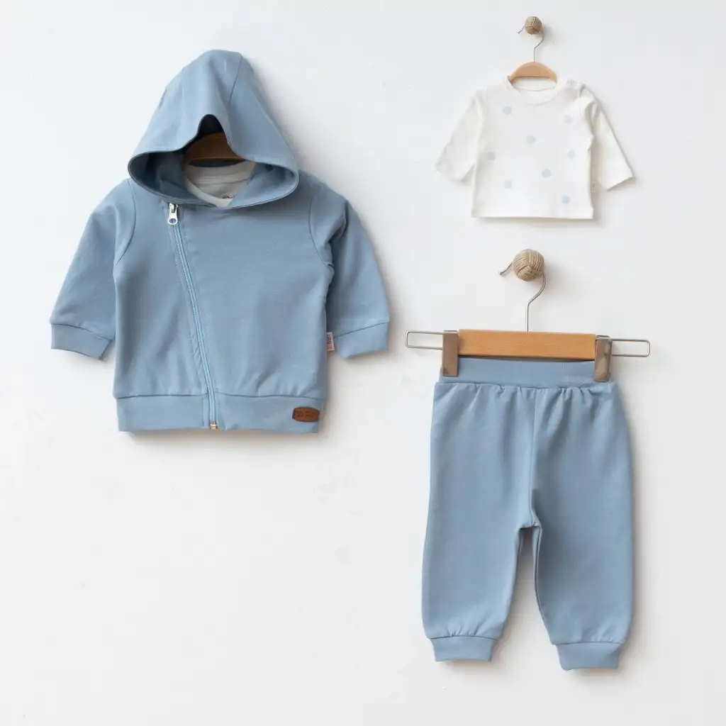 Bebeklerinizin gün içinde şık ve konforlu olmasını sağlayacak "Erkek Bebek 3’lü Hırkalı Takım" ile bebeğinizin gardırobunu yenileyin.