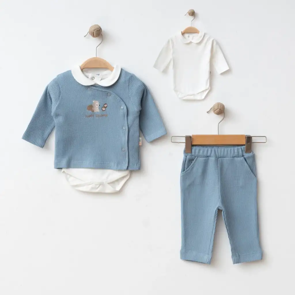 Bebekler için şirin ve şık bir görünüm sunan "Erkek Bebek 3’lü Hırkalı Takım" ile bebeğinizin stilini tamamlayın.