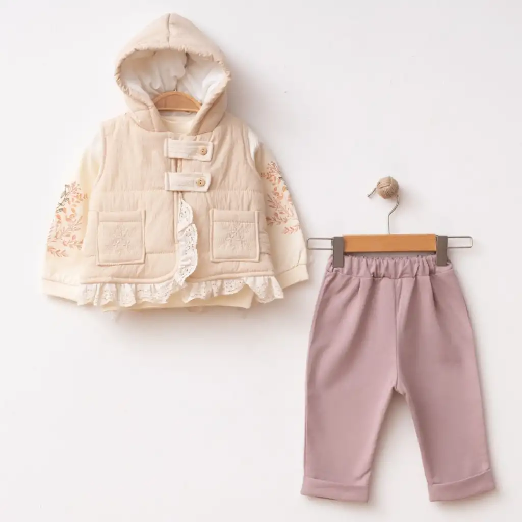 Bebeklerinizi soğuk havalarda sıcacık tutacak Kalın Yelekli 3’lü Takım, hem şık görünüşüyle hem de üstün kalitesiyle öne çıkıyor.