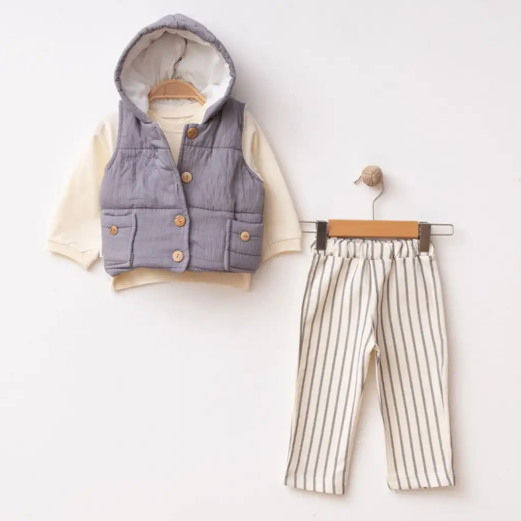 Bebeklerinizi soğuk havalarda sıcacık tutacak Kalın Yelekli 3’lü Takım, hem şık görünüşüyle hem de üstün kalitesiyle öne çıkıyor.
