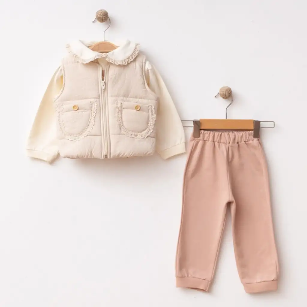 Bebeklerinizi soğuk havalarda sıcacık tutacak Kalın Yelekli 3’lü Takım, hem şık görünüşüyle hem de üstün kalitesiyle öne çıkıyor.