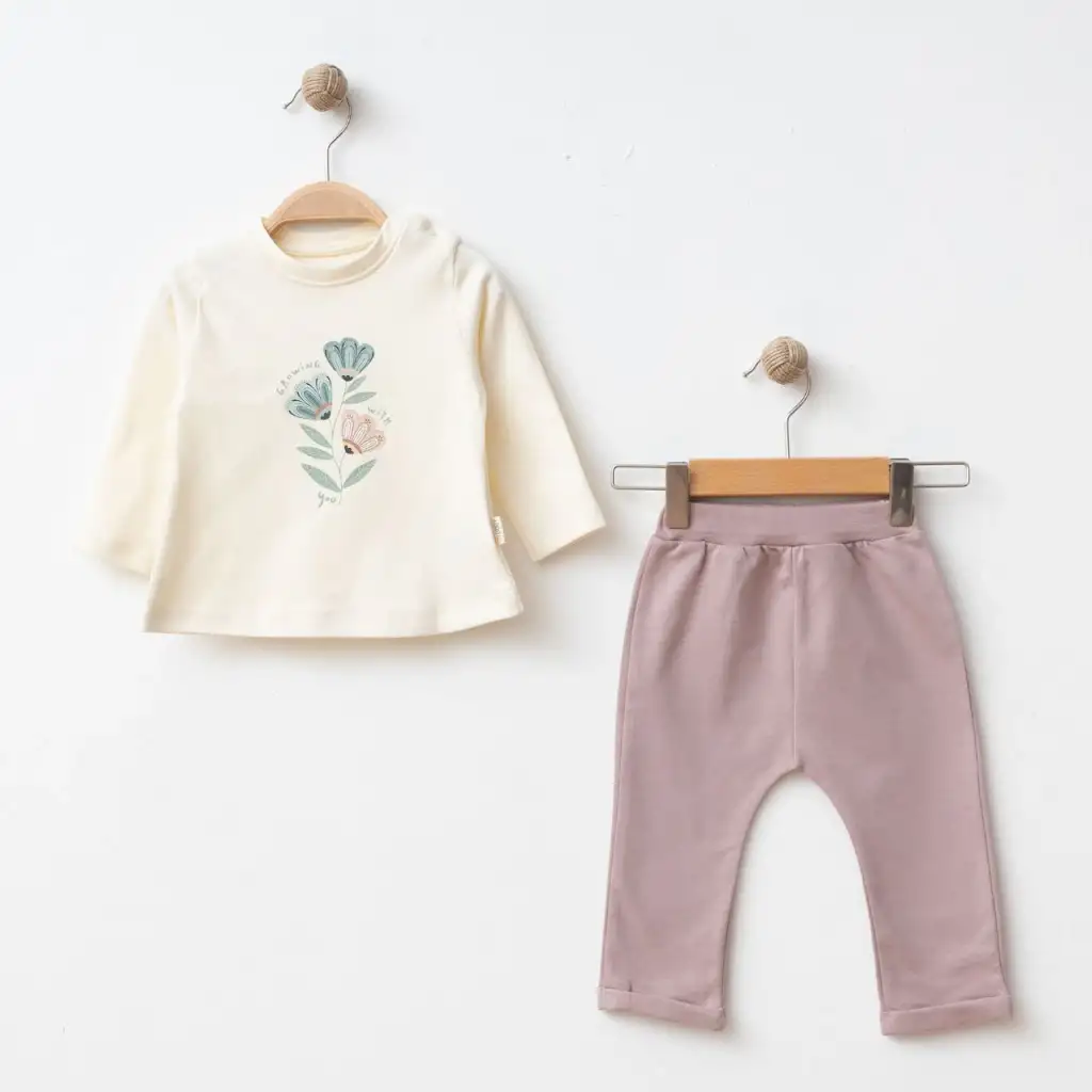 • 3 parçadan oluşan takım, hırka, t-shirt ve eşofman'dan oluşur.
