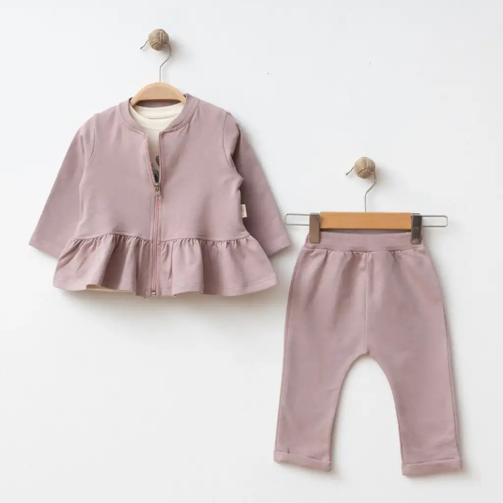 Bu güzel takımı tercih ederek bebeğinizi hem şık hem de rahat hissettirebilirsiniz. Kız Bebek 3'lü Hırkalı Takımı hemen sepetinize ekleyin!